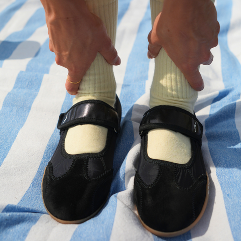 A playful revival of the classic Mary Jane, this retro-sporty silhouette feels lifted from a schoolyard daydream—part gym-class relic, part tender keepsake from a summer spent outdoors.