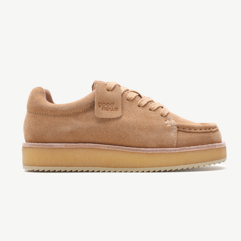 A modern take on a classic moccasin silhouette, crafted in soft suede with a padded heel counter for casual comfort. Finished with heritage welting, a natural crepe rubber sole, and a tonal Good News tab – an effortlessly refined style made for all occasions.